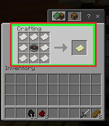 완성한 나침반을 인벤토리에 옮기고 종이를 만들어줍니다.