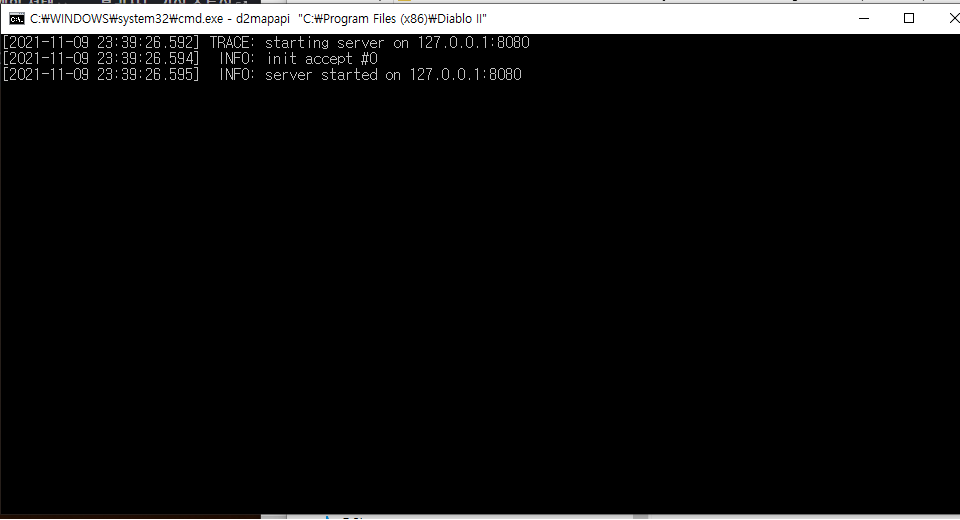 이제 패치까지 완료가 되었습니다. 하단 경로에서 프로젝트 디아블로2를 설치 해주면 준비는 끝났습니다. 그림처럼 실행이 되면 그냥 켜놓기만 해주세요.